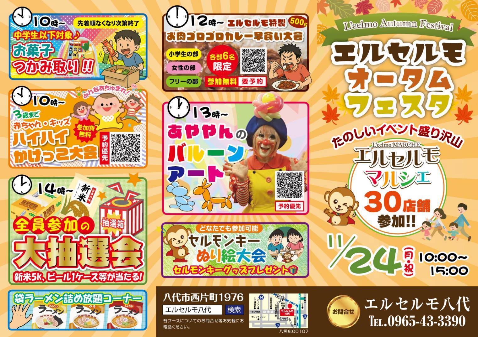皆さま、こんにちは!本日は、2025年11月24日(月祝)にエルセルモ八代で開催されます「エルセルオータムフェスタ」に出店しますのでお知らせです♪ 「エルセルモマルシェ」では、ライフプランアドバイザーとしてご来店された方 … 11/24(月祝)「エルセルモオータムフェスタ」出店のお知らせ♪