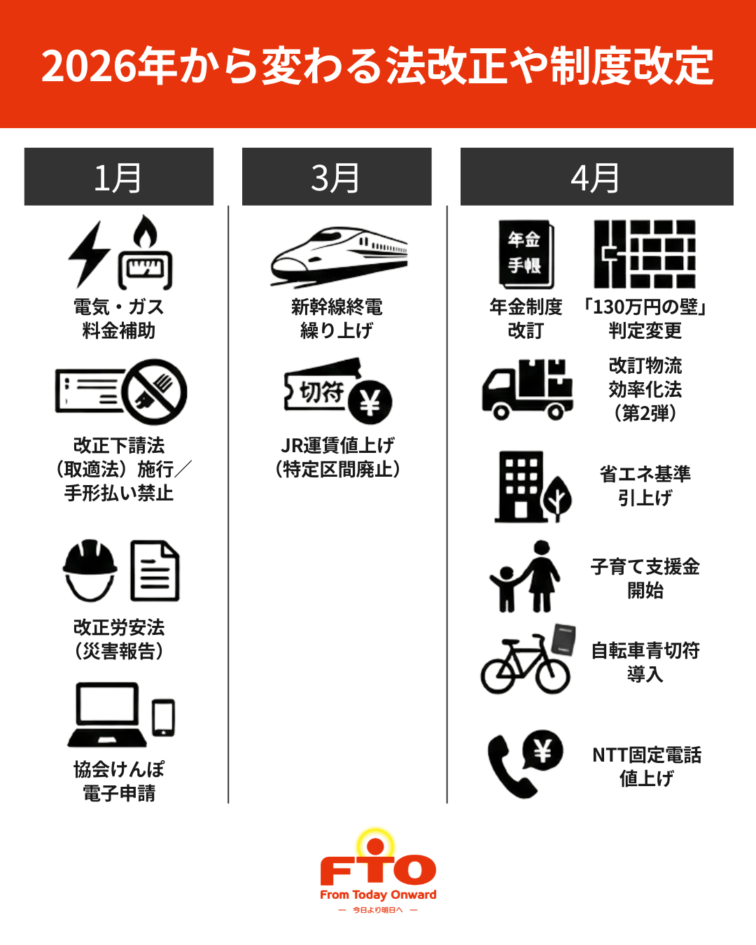 本日は、2026年に大きな法改正や制度改正が予定されていますので、主な変更点をイラスト付きで一覧にまとめました! 法改正や制度改正によって、自分や家族の暮らしへの影響は様々だと思います! これを踏まえて、ライフプランを私 … 2026年から変わること!法改正や制度改正一覧