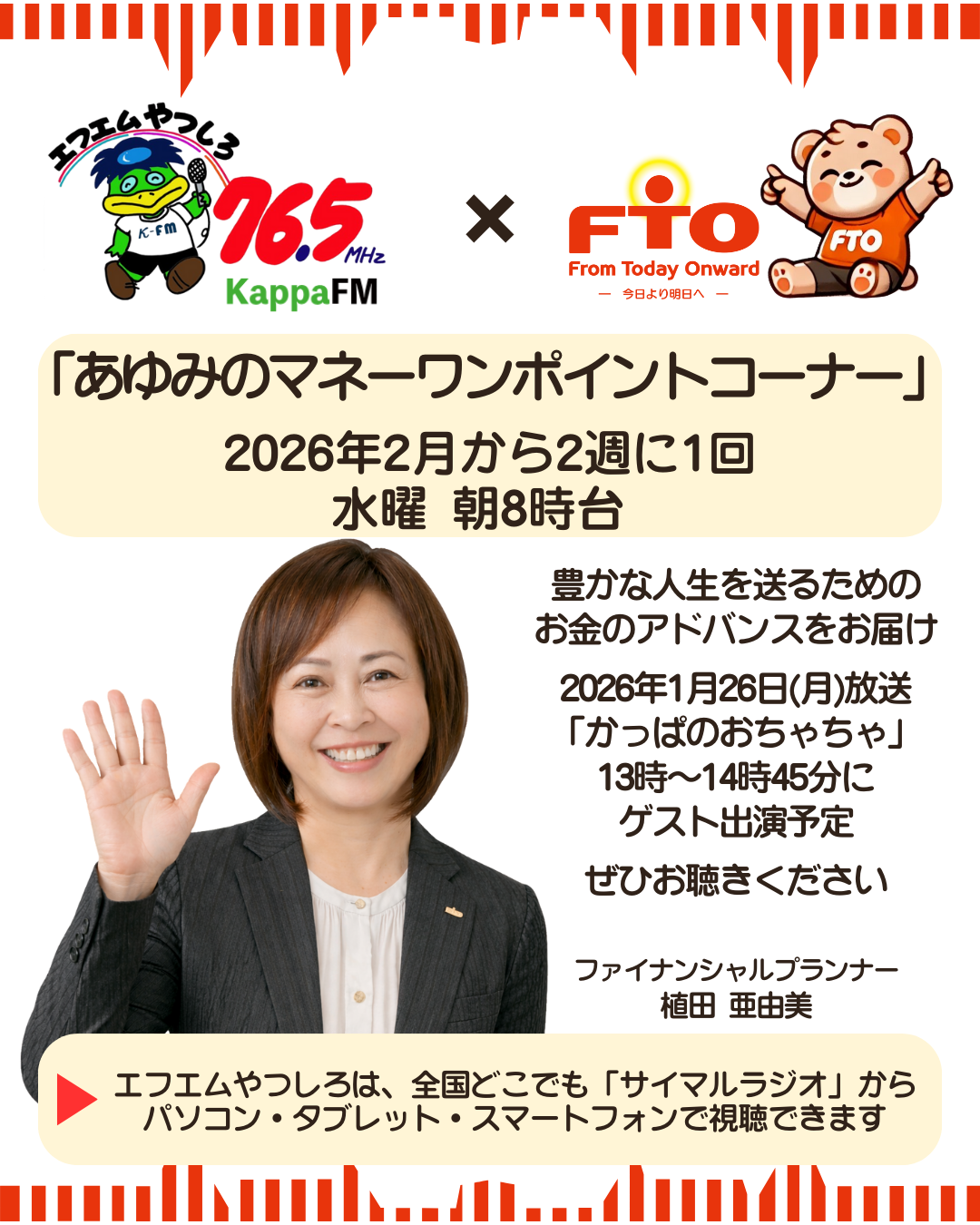 新年あけましておめでとうございます。 旧年中は多くのご縁とご相談をいただき、心より感謝申し上げます! 2026年を迎え、私たちの暮らしを取り巻くお金の環境は、引き続き大きな変化の中にあります。 物価や金利の動向、制度改正 … 2026年 新年のご挨拶